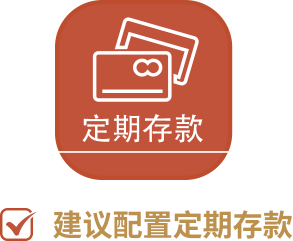 建议配置定期存款,并可通过手机银行直接购买合理期限下利率最高的产品。